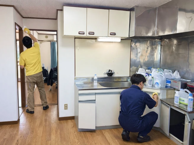 マンション、戸建ての退去後のお部屋を次の入居者様へ引き渡すための清掃です。キッチン・浴室・トイレなどの水回りを中心に、床、建具、収納内部など、室内全体を清掃します。引き渡し前のスポット清掃から、管理会社様・オーナー様のご要望に応じた対応まで、状況に合わせて柔軟に対応可能です。