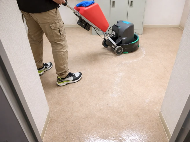 床のポリッシャー清掃やワックス剥離、塗布に関しては素材や状況により変動があるためお見積もりとなります。