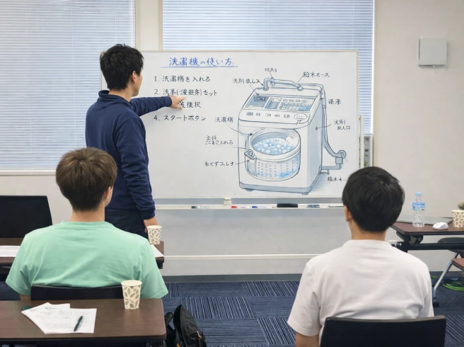 エアコン・洗濯機を実際に分解し、現場を想定した洗浄作業を行います。失敗しやすいポイントやトラブル回避のコツもあわせて指導します。 - 応用・トラブル対応の考え方